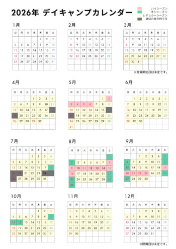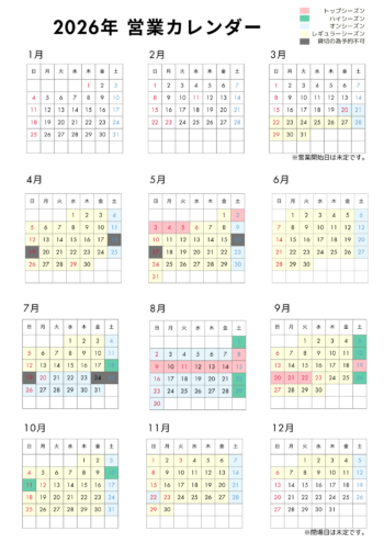 ※営業カレンダー右上にシーズンの色分け表示があります。